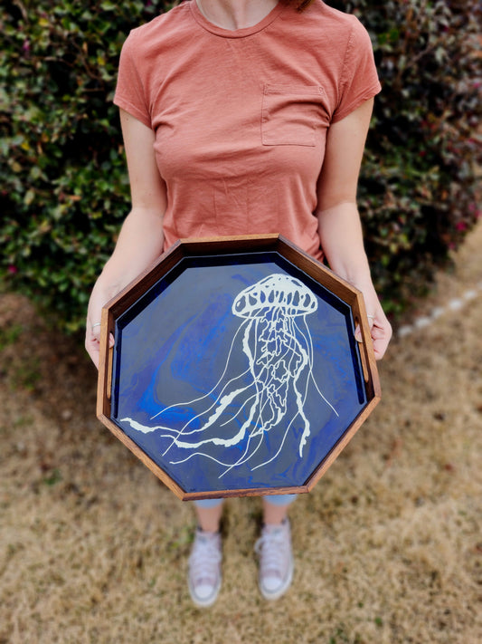 Medium Octagon Serving Tray| Pacific Blue with Turtles