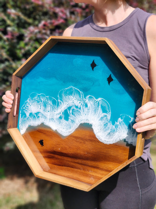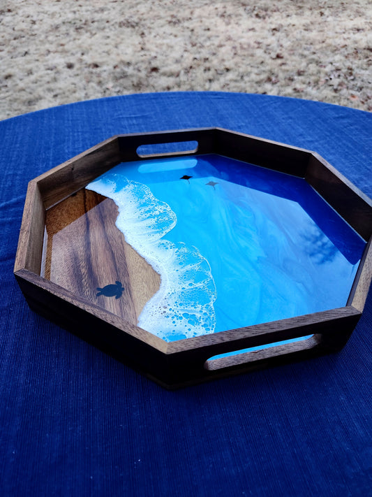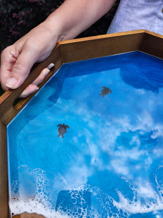 Medium Octagon Serving Tray| Pacific Blue with Turtles