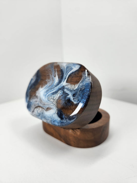 Black Walnut Aqua Swirl "C" Table, double live edge, with outlets