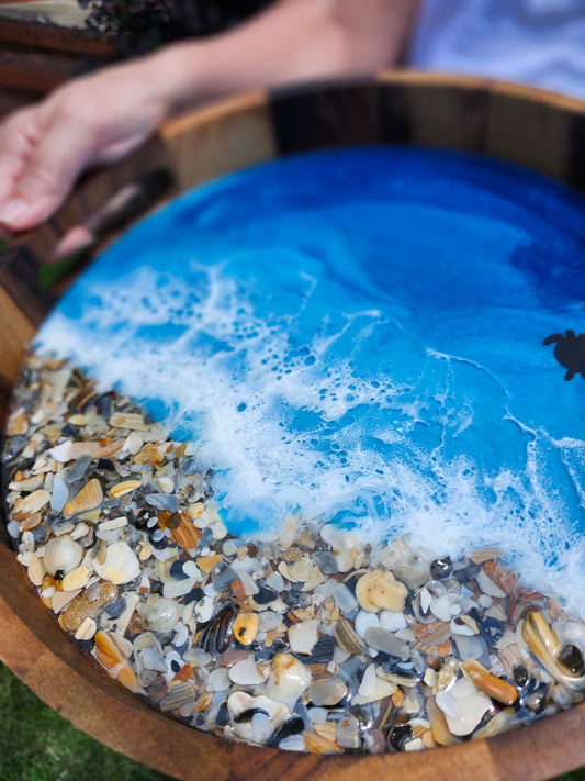 Small Circle Serving Tray| Pacific Ocean with Crushed Shells