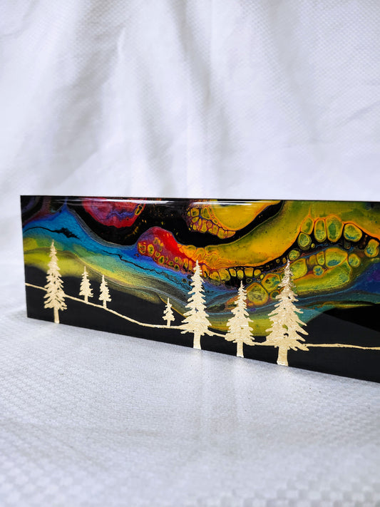 Aurora Inspired Tea Box (rainbow sky, gold trees)