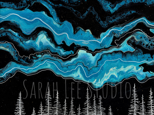 Aurora Inspired Tea Box (Blue+Green sky, silver trees)