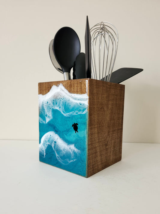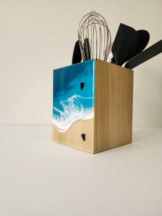 Utensil Holder with Turtle + Stingray | Caribbean Ocean