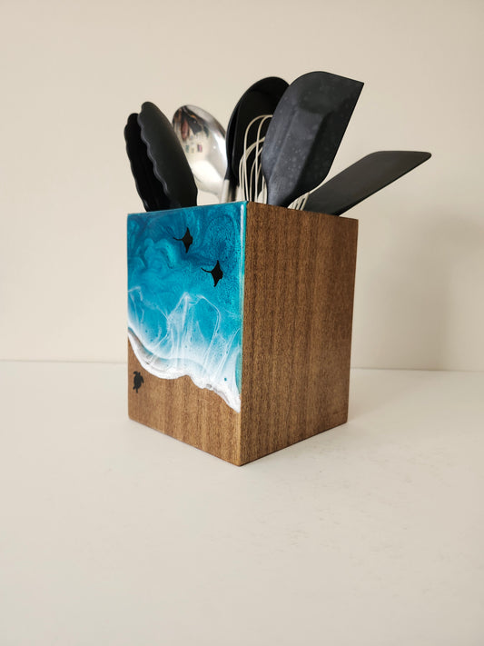 Utensil Holder with Stingrays + Turtle | Caribbean Ocean