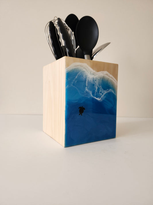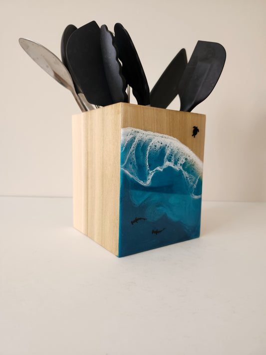 Utensil Holder with Turtle and Sharks| Caribbean Ocean