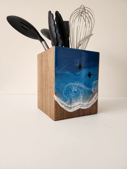 Utensil Holder Two Sting Rays| Stormy Ocean