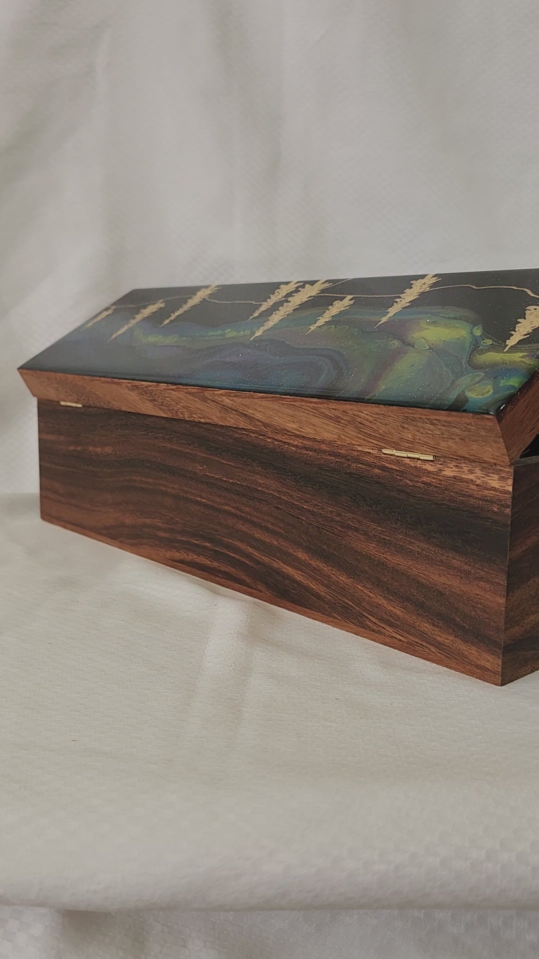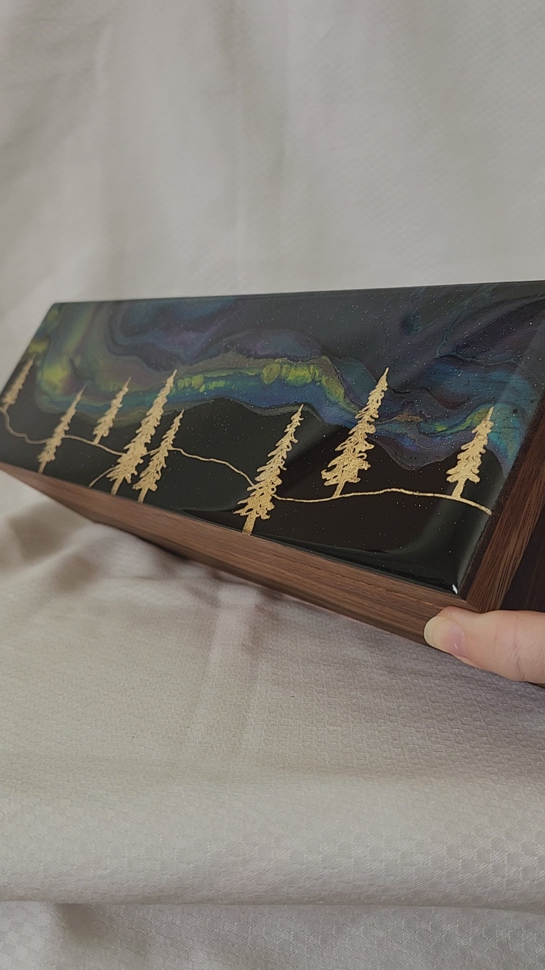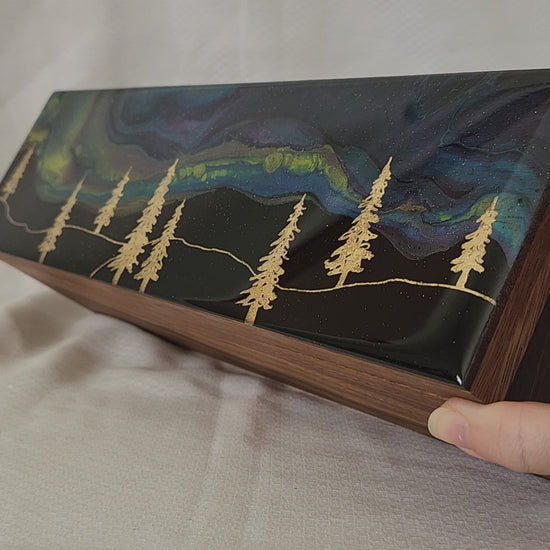 Aurora Inspired Tea Box (multicolor sky gold trees)