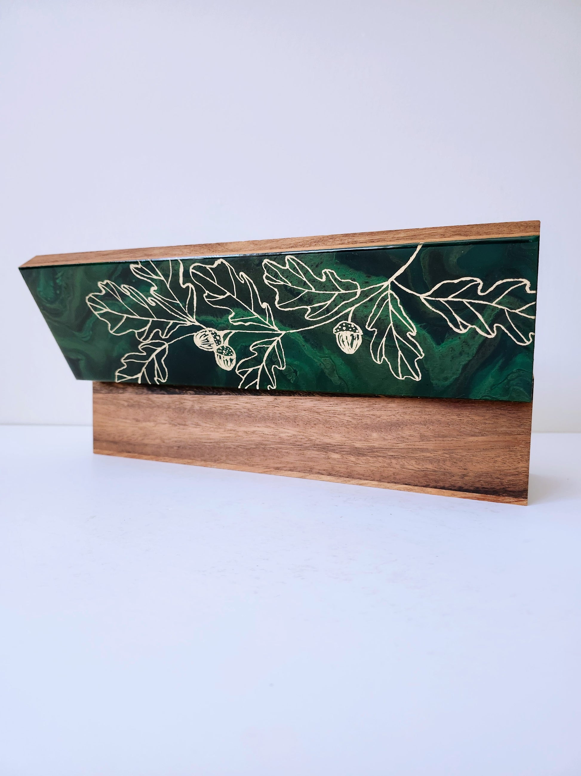 Gilding is the process of applying thin sheets of metal, like gold or silver leaf to a surface. This technique has been used for centuries to add elegance and luxury art and beyond. For my trays, gilding enhances each design with rich metallic details, making every piece unique and eye-catching.