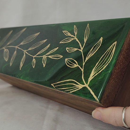 Gilding is the process of applying thin sheets of metal, like gold or silver leaf to a surface. This technique has been used for centuries to add elegance and luxury art and beyond. For my trays, gilding enhances each design with rich metallic details, making every piece unique and eye-catching.
