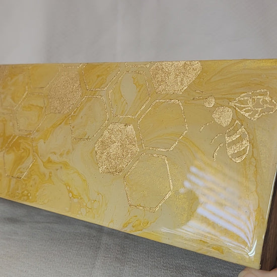 Gilding is the process of applying thin sheets of metal, like gold or silver leaf to a surface. This technique has been used for centuries to add elegance and luxury art and beyond. For my trays, gilding enhances each design with rich metallic details, making every piece unique and eye-catching.