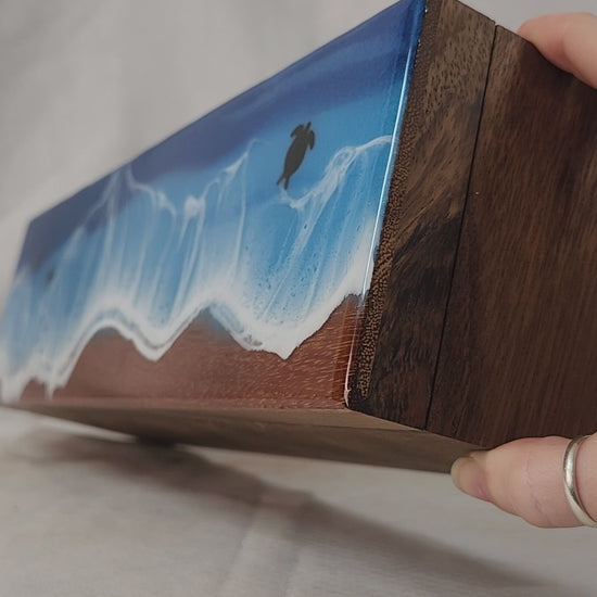 Ocean Tea Box | Wood Beach with Sea Turtle + Stingrays | Pacific Blue Ocean